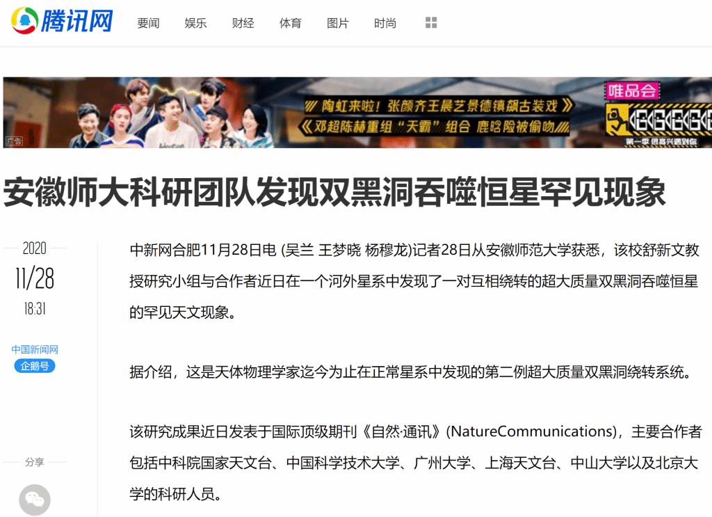 该研究成果近日发表于国际顶级期刊《自然·通讯》(NatureCommunications),主要合作者包括中科院国家天文台、中国科学技术大学、广州大学、上海天文台、中山大学以及北京大学的科研人员。