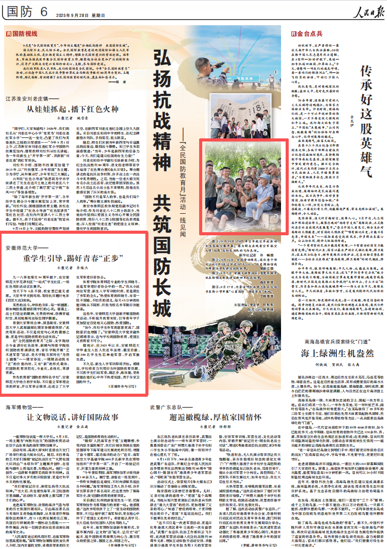 这些年,安徽师范大学创新开展国防教育活动,不断提升教育实效,引导青年学子更加坚定自觉地关心国防、热爱国防。