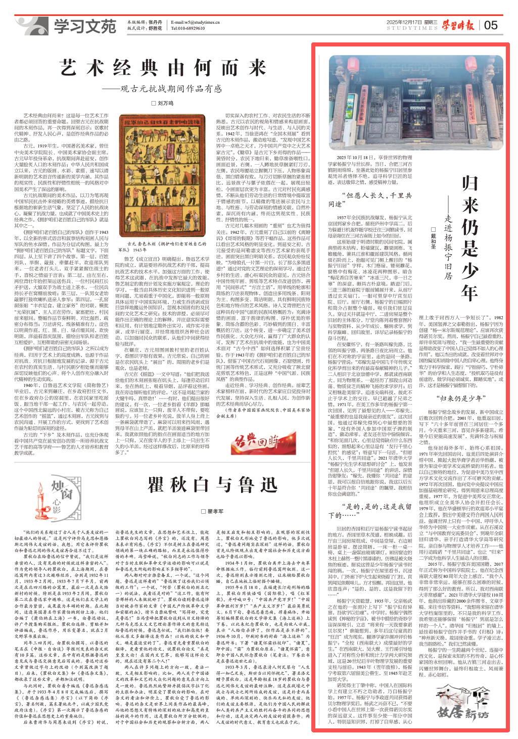 2015年,杨振宁放弃美国国籍,2017年正式转为中国科学院院士。他在纪念西南联大建校80周年大会上感言,“我个人非常非常幸运,能够在那么困难的时候,得到了那么好的教育。所以,我对西南联大非常感谢”。2021年清华大学建校110周年,他捐出珍藏的2000余件图书、文章手稿、来往书信等资料,“我想将来留在清华大学档案馆里的,不只是我的科学工作,我希望还能够保留‘杨振宁’到底是怎么样的一个人”。清华园“归根居”的墙上,悬挂着杨振宁创作并手书的《归根》诗:“神州新天换,故园使命重。学子凌云志,我当指路松。”我们已然读懂。