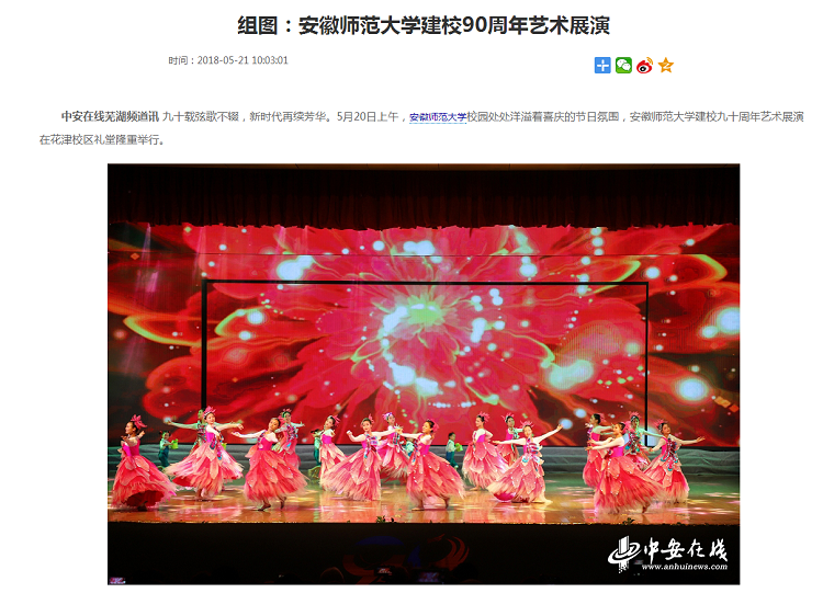 九十载弦歌不辍,新时代再续芳华。5月20日上午,安徽师范大学校园处处洋溢着喜庆的节日氛围,安徽师范大学建校九十周年艺术展演在花津校区礼堂隆重举行。