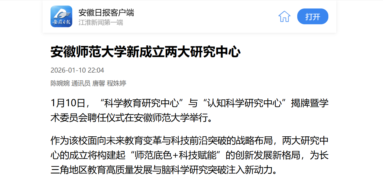 原报道阅读链接:【安徽日报客户端】https://app.ahnews.com.cn/displayTemplate/news/newsDetail/253/1651026.html?isShare=true&xyt=1768054972092