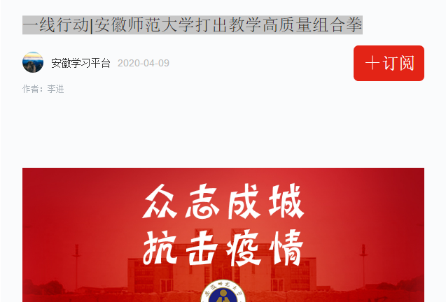 提供网络资源,助力师生“停课不停学”。为进一步保障师生疫情防控期间在线教学直播与学习、居家办公不受影响,安徽师范大学针对校园网用户推出欠费不断网服务,为利用校园网进行线上教学的老师提供免流量费服务,并主动与三大运营商洽谈争取网络服务,为在芜教师提供网络带宽提速服务,为学生提供10G免费手机流量,硬核助力师生线上教学与学习。