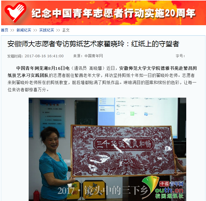 随着人们对传统文化的关注度逐渐提高,繁昌老年大学每年都有新学员加入。但在谈到剪纸的未来时,翟晓玲老师还是显得有些忧虑:“现在学剪纸的人越来越多,但普遍都是老年人,剪纸是优秀传统文化,更需要年轻人的力量。”